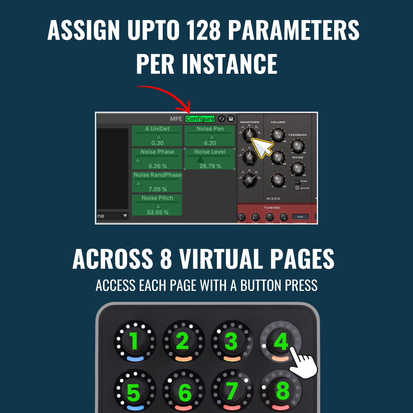 Assign up to 128 Parameters across 8 virtual Pages