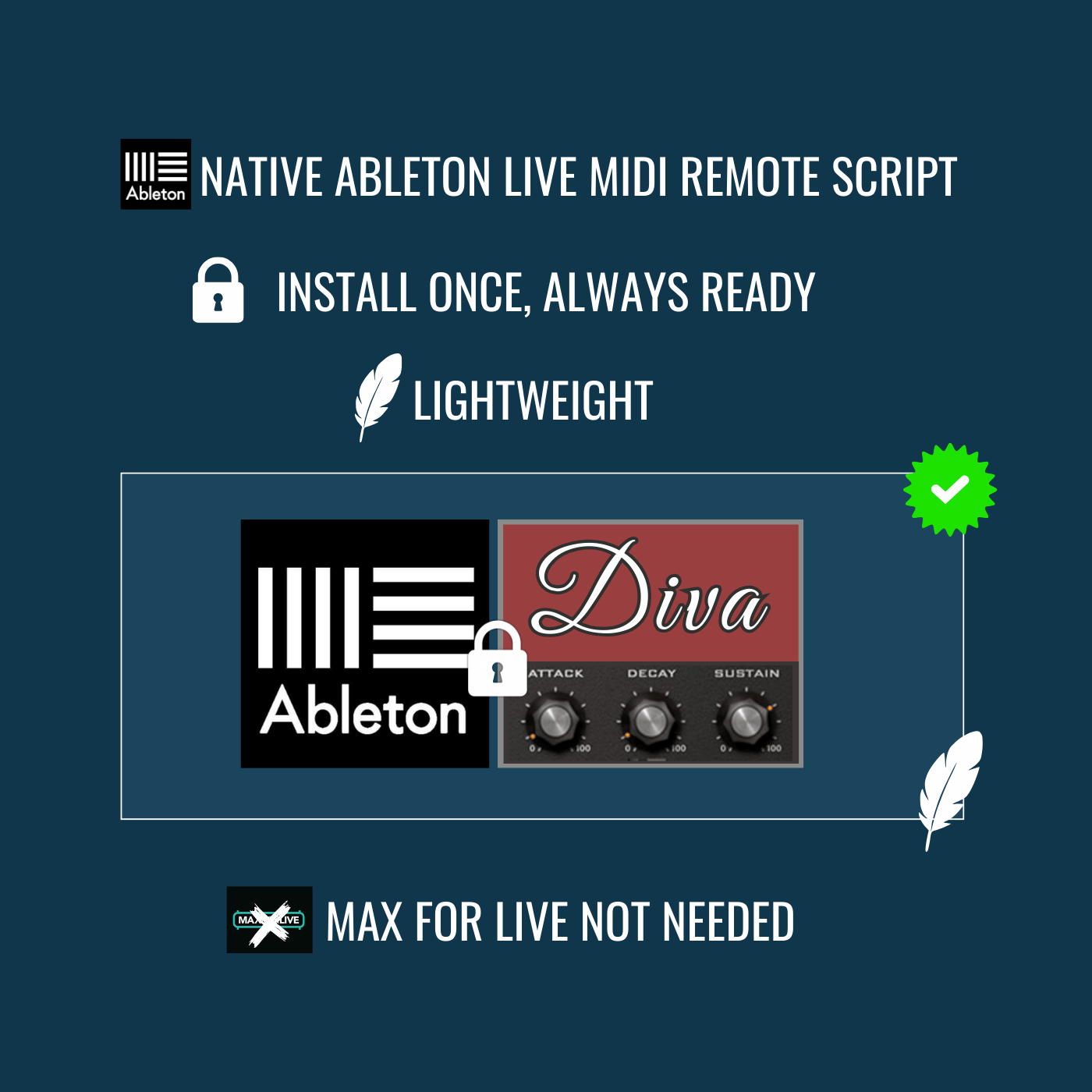 • Native, lightweight MIDI Remote Script – no Max for Live or extra devices need to be added in your Ableton Live project.