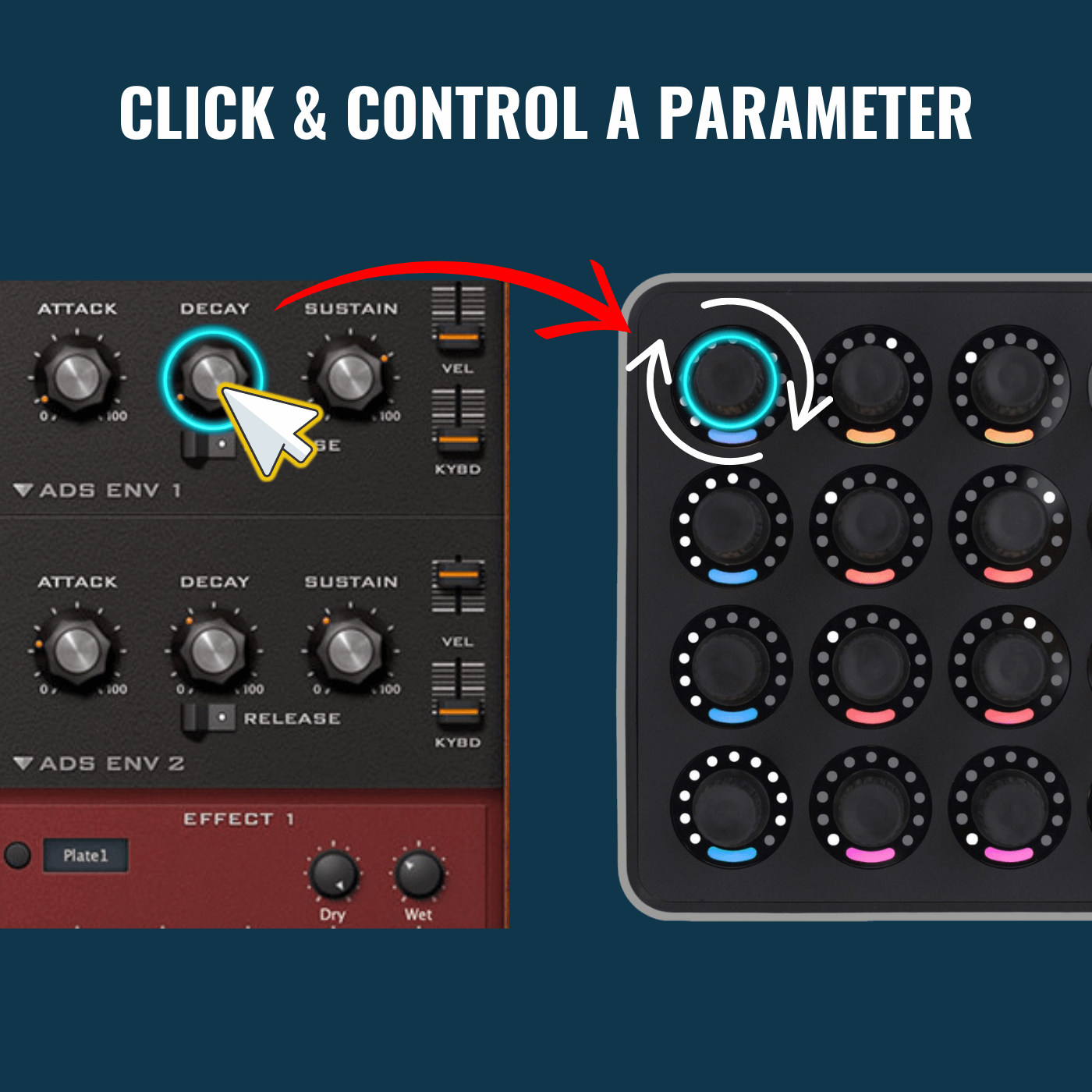 No guessing, or staring at the computer screen needed, you get full LED Feedback on your Midi Fighter Twister