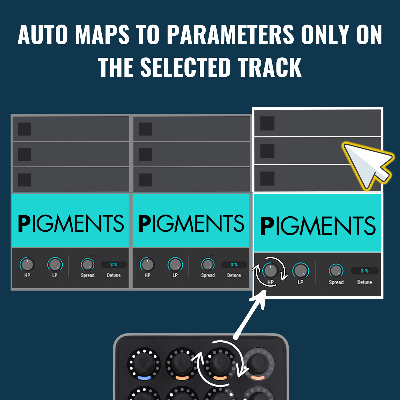 • Auto maps to Pigments anywhere in the Ableton Live Device Chain.