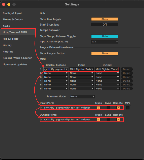 Instantly maps your Midi Fighter Twister to the parameters of Pigments on the currently selected track of Ableton live.
