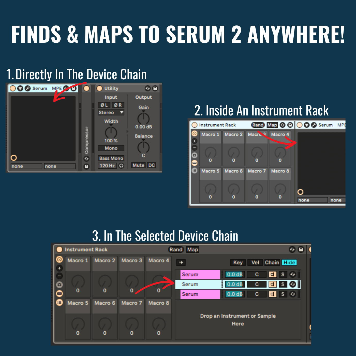 It automatically finds and maps to Serum 2 no matter where its located in the track's device chain.