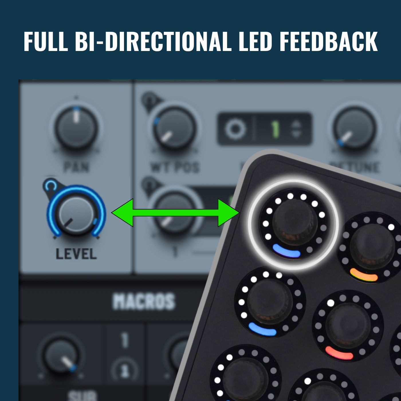 No guessing, or staring at the computer screen needed, you get full LED Feedback on your Midi Fighter Twister