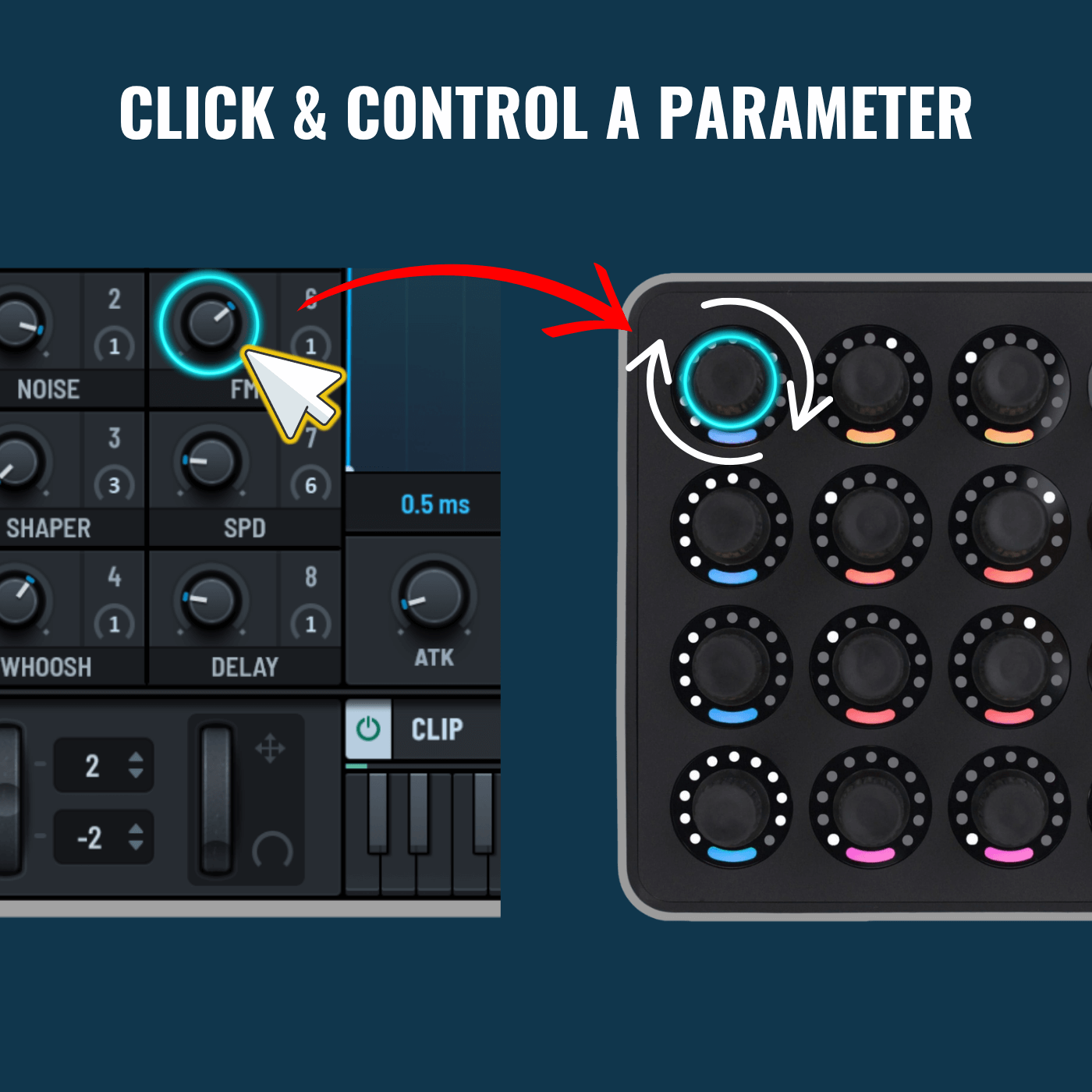 Click a parameter in the Serum 2 interface and control it using the first encoder on your Midi Fighter Twister.