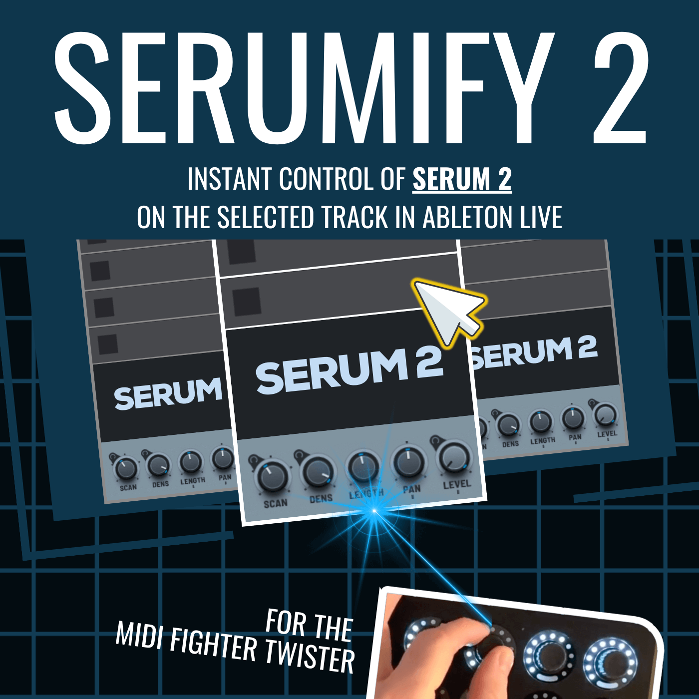 Serumify 2 is an independent third-party script designed for compatibility with the Midi Fighter Twister and Serum 2.