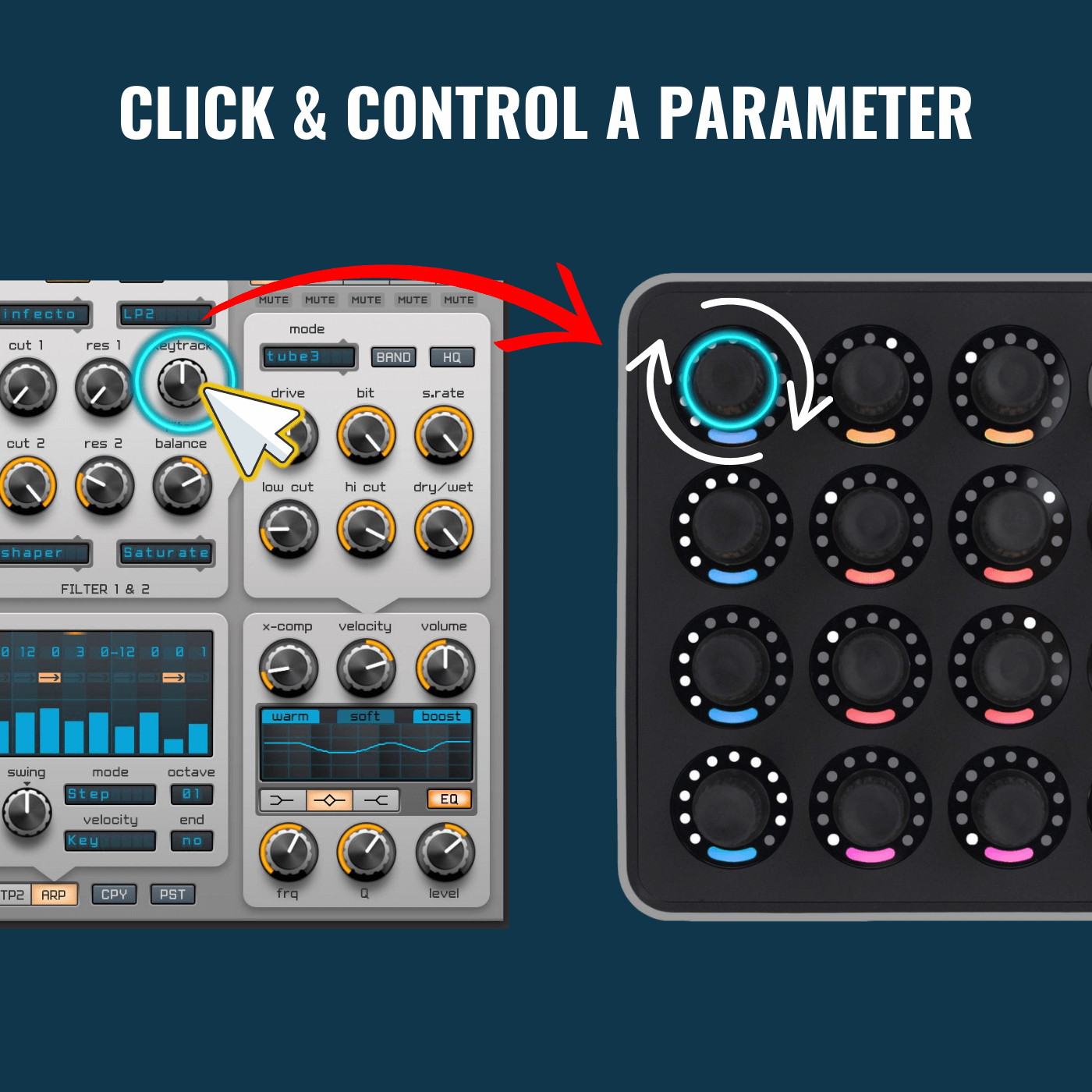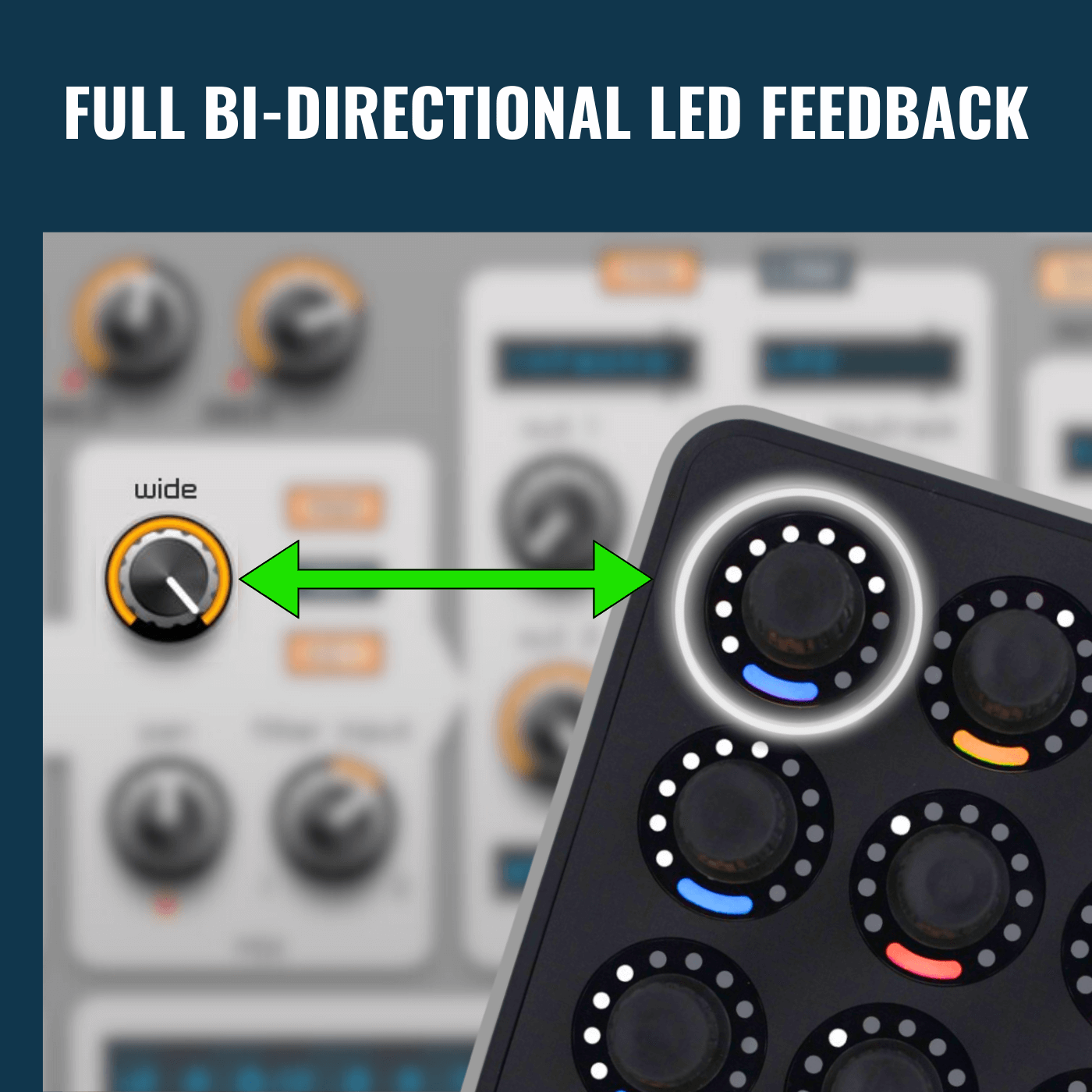 No guessing, or staring at the computer screen needed, you get full LED Feedback on your Midi Fighter Twister