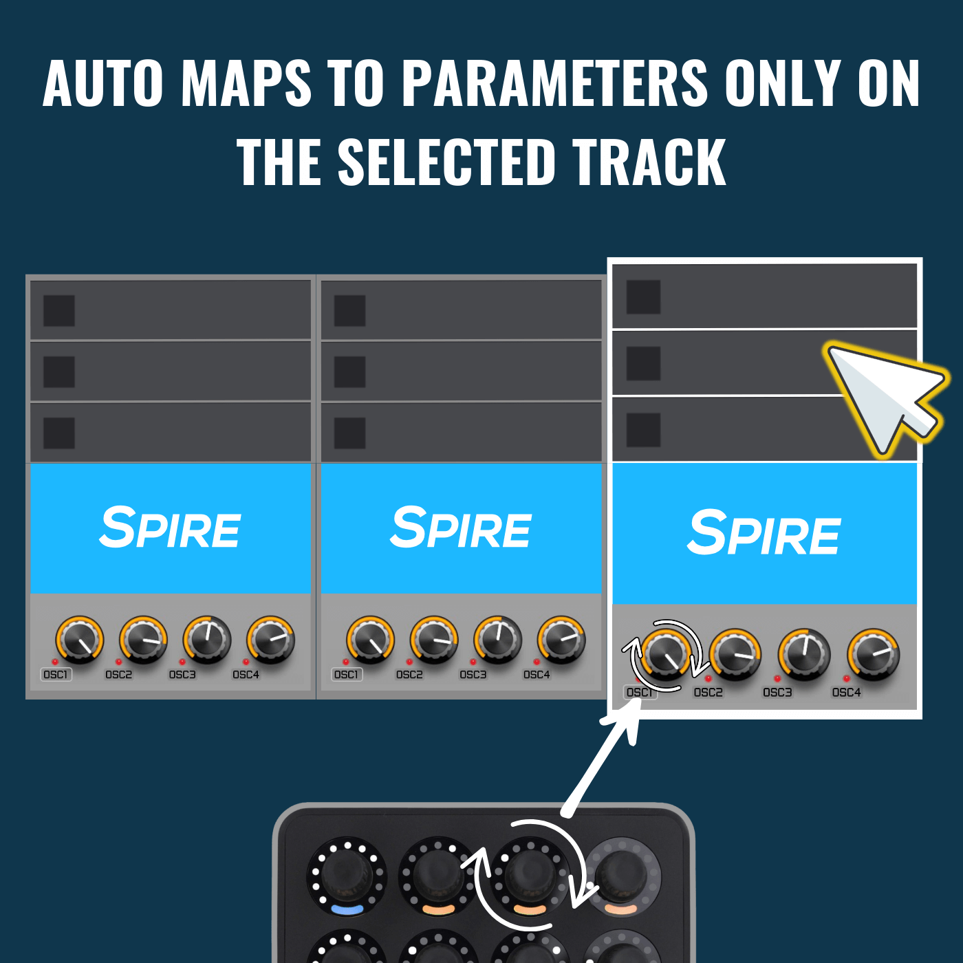 Whenever you select a new track, Spirify automatically re-maps your Midi Fighter Twister to the instance of Spire on the new track.